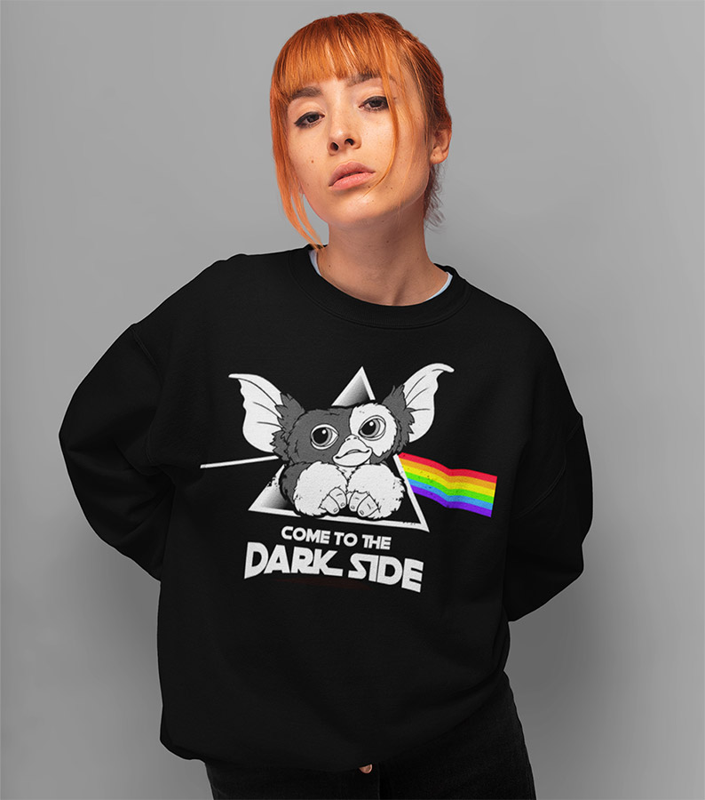 A unique black women sweater from our ‘Back To The Future’ collection with our iconic all over ‘Dark Side’ Print.