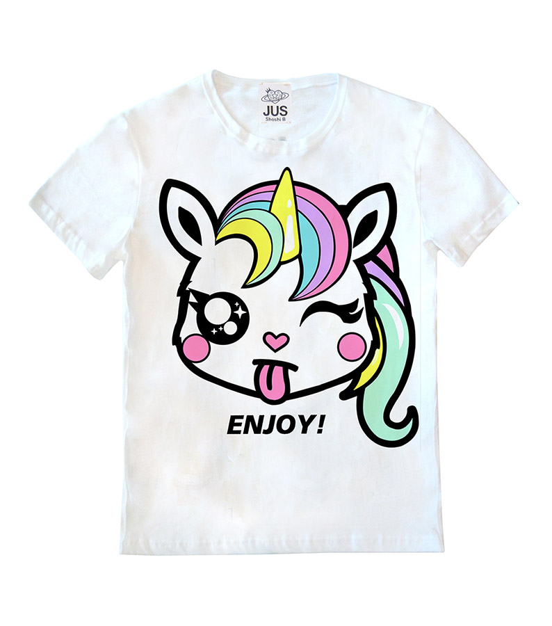 A unique unisex cream T shirt from our Samples collection with our iconic all over ‘Enjoy’ Print.