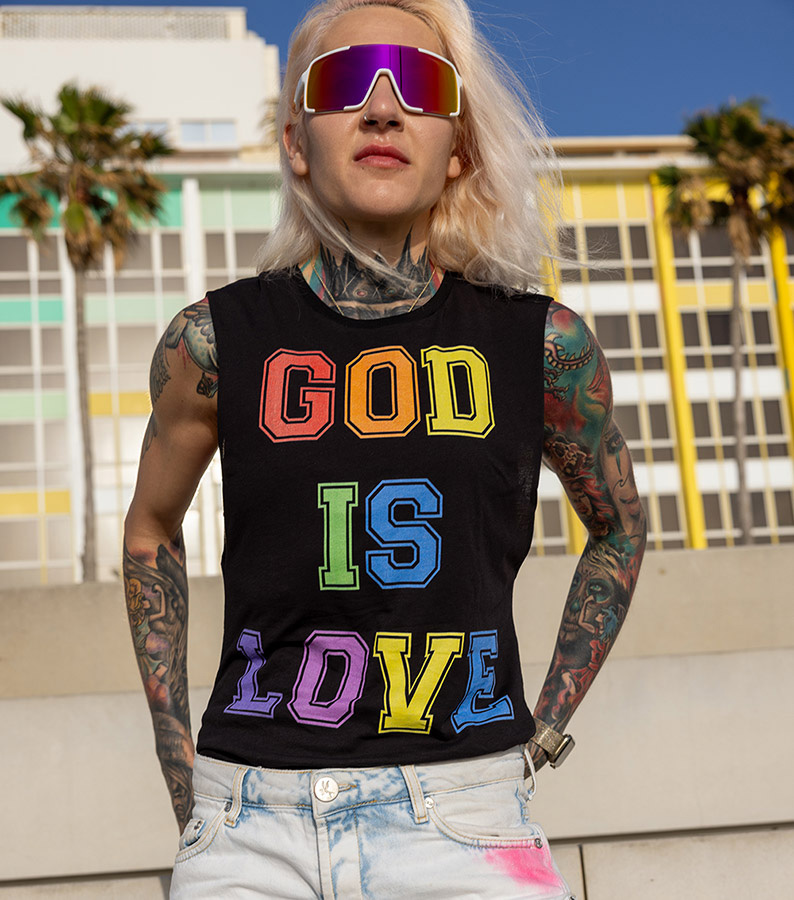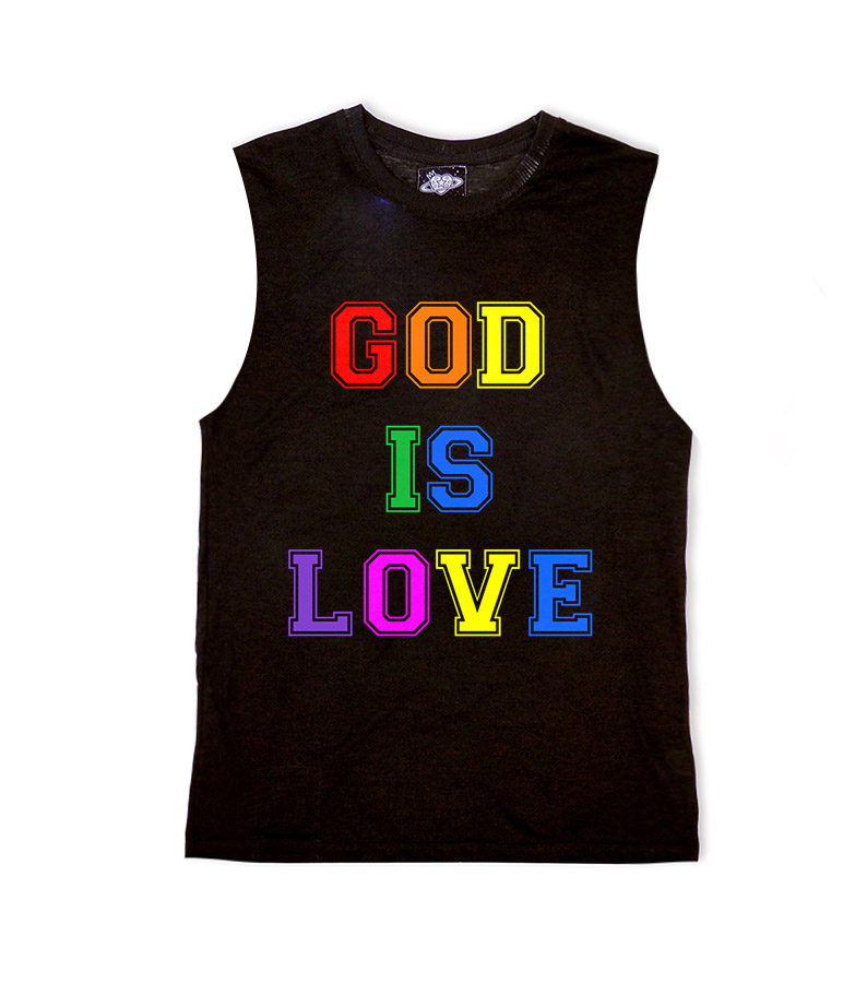Our most Iconic new Pride collection black Tank top with ‘God Is Love’ print!!