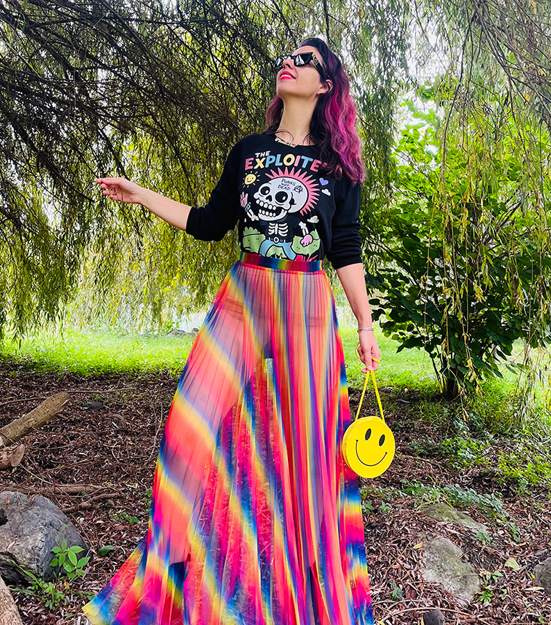 A unique black women sweater from our new ‘IDOLS’ collection with our iconic all over ‘Happy Skull’ Print.