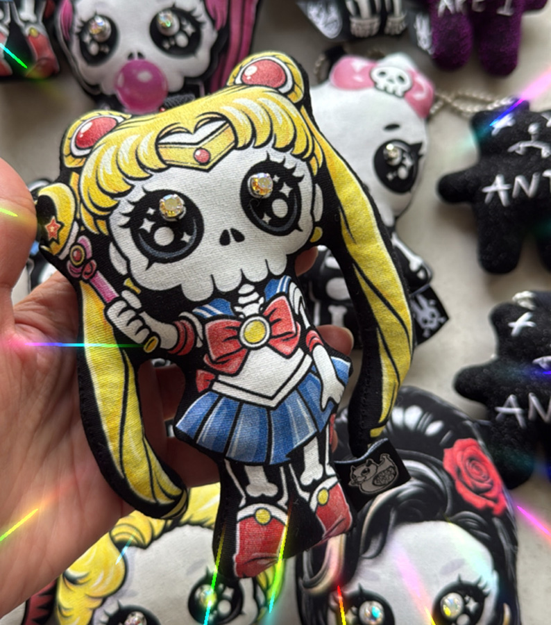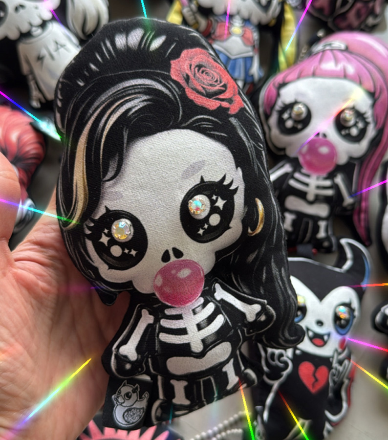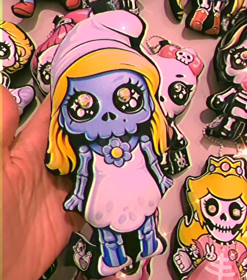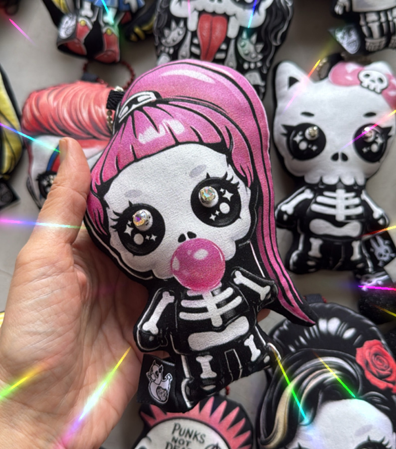 The Mini Doll Has a metal chain attached, so you can hang it anywhere you want, on a bag, on a skirt, in the car…