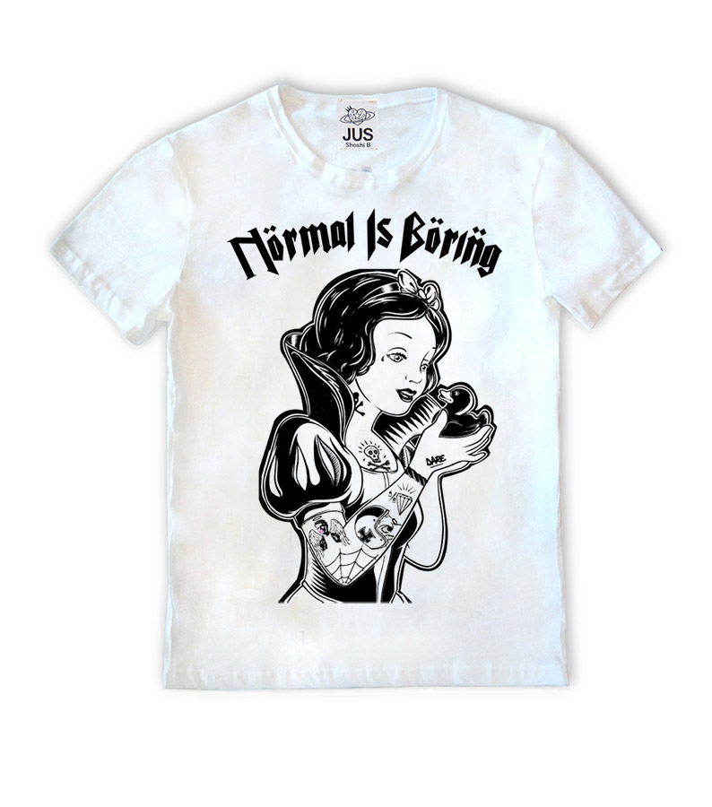 A unique unisex black T shirt from our Samples collection with our iconic all over ‘Normal Is Boring’ Print.
