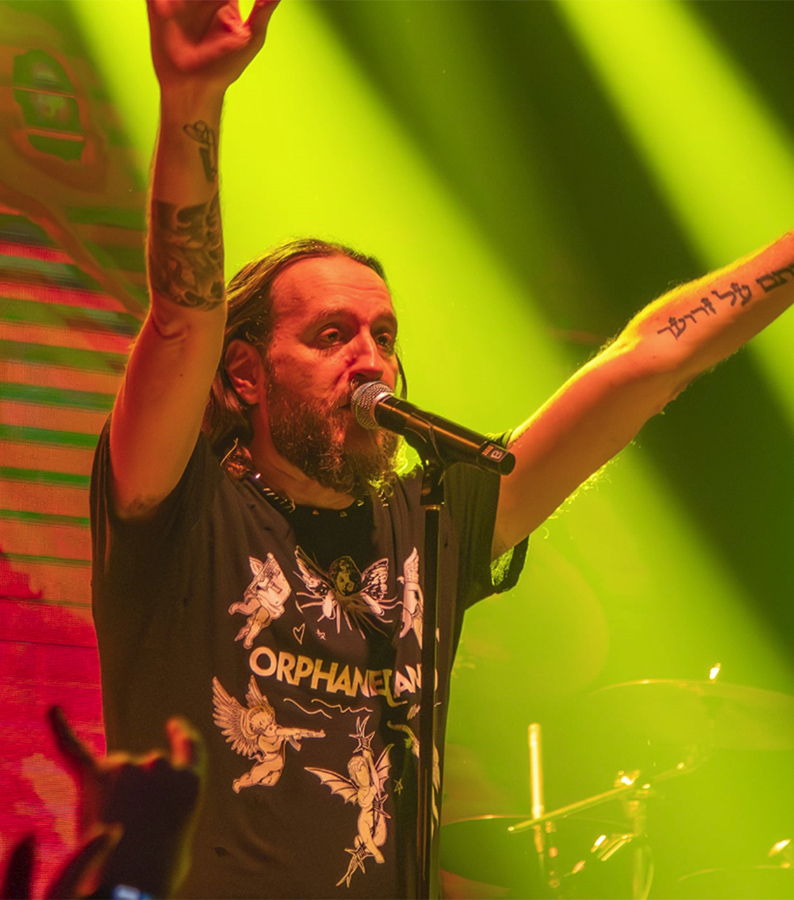 A unique unisex T shirt from our new ‘ORPHANED LAND’ collection with our iconic all over ‘We May Build Our Realm Of Light’ Print.