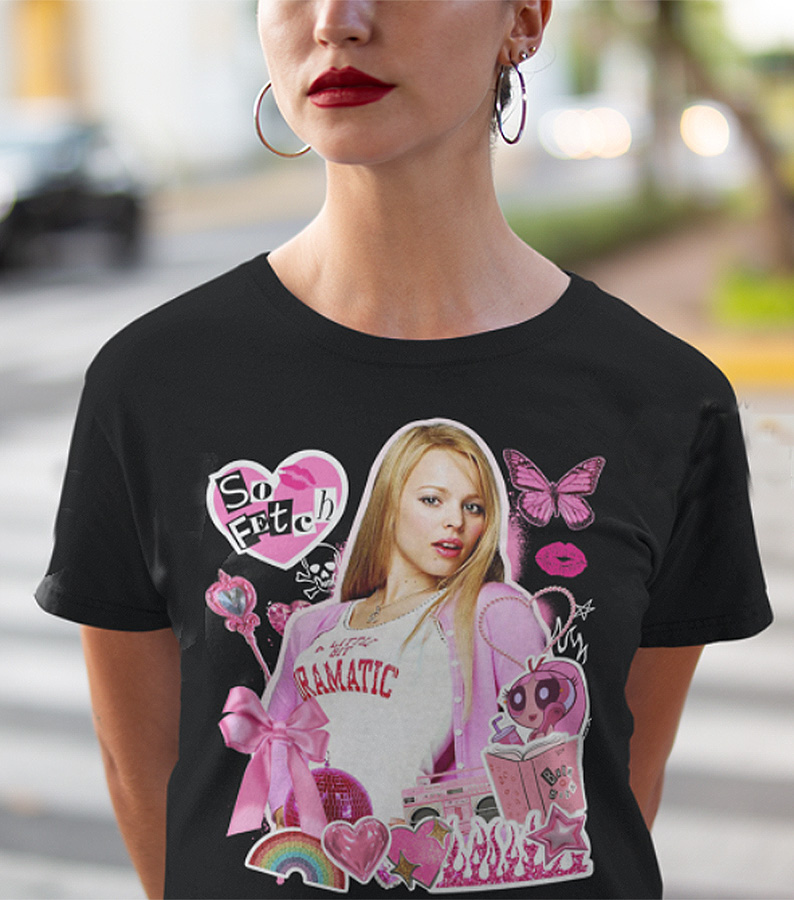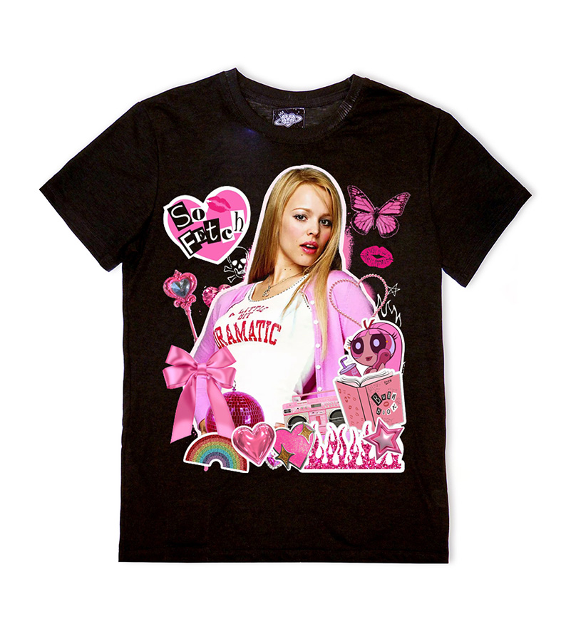 A unique unisex black T shirt from our Samples collection with our iconic all over ‘So Fetch’ Print.